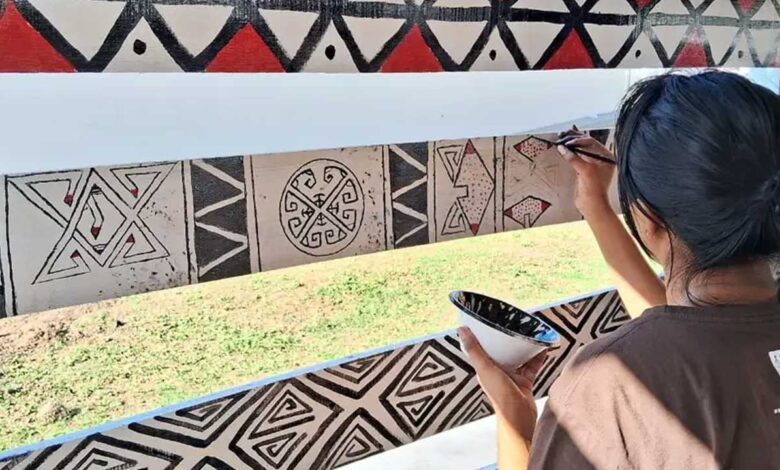 Maloca dos povos indígenas traz grafismos, culinária tradicional e dança Kutxi para o evento.