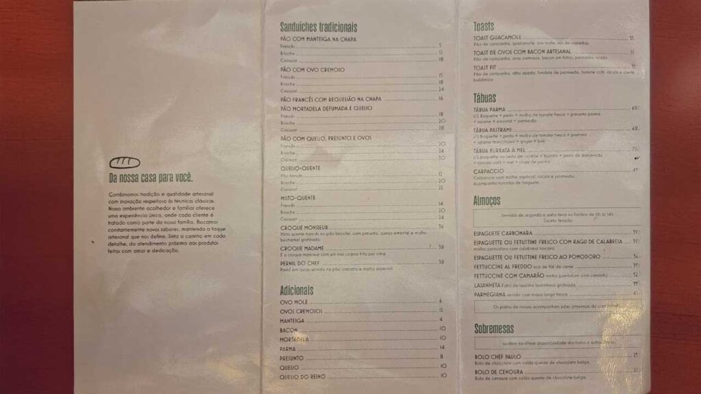 Conheci a padaria do chef Paulo de uma forma bastante inesperada. Eu e meu namorado caminhávamos pela rua quando, ao passarmos em frente à loja ainda em construção, paramos curiosos para saber o que seria aquele espaço. Nesse momento, um senhor muito educado se aproximou de nós e contou que a inauguração estava prevista para a semana seguinte. Ficamos ali, observando o corre-corre da equipe que, às pressas, limpava e organizava cada detalhe da obra, quando o próprio Paulo, com um sorriso acolhedor, nos convidou a entrar.