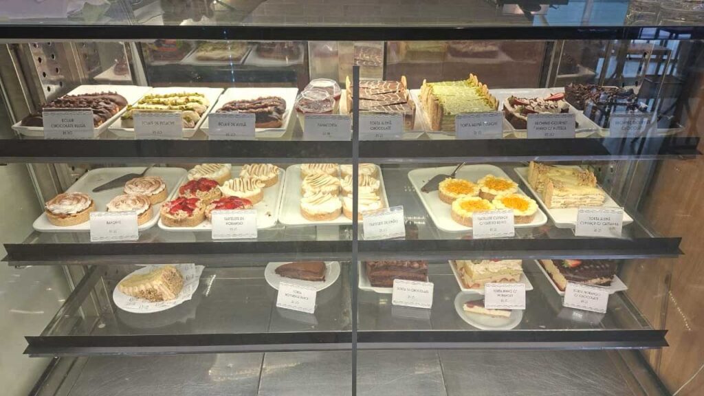 Outro destaque é a seção de congelados e produtos especiais para levar para casa. Queijos, frios, refrigerantes importados, antepastos e molhos variados compõem uma seleção que amplia a experiência da padaria além das mesas do salão. Tudo é fresco, bem conservado e pensado para quem deseja prolongar em casa o sabor de um pedacinho da Itália e da França em Belém.