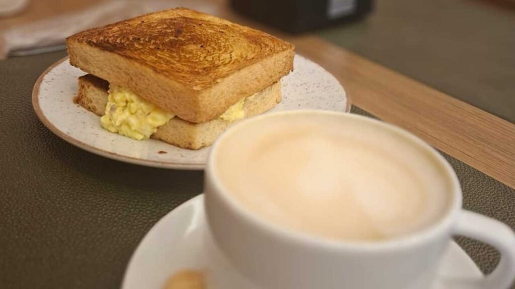 Alguns dias depois, retornamos para a inauguração, nos deliciamos com as pizzas e aproveitamos para embarcar em um vinho tinto encorpado. Mas, somente depois de alguns meses após abrir a coluna “Artes e Sabores” aqui no Amazônia Online, que iniciamos nossa avaliação crítica. Tivemos a ideia de experimentar o que a padaria oferece. Optamos pelo café da manhã, que no papel parecia simples, mas conseguiu nos surpreender em sabor e qualidade. Pedimos dois cafés com leite, sendo um deles zero lactose, ambos preparados com cuidado e servidos de forma impecável. Para acompanhar, escolhemos um croque monsieur muito bem recheado, saboroso e generoso, ainda que pudesse estar um pouco mais gratinado por cima para realçar melhor os sabores. Também pedimos um pão com ovo cremoso que, apesar do título modesto, revelou-se um dos melhores pratos da manhã: o pão, extremamente macio e amanteigado, lembrava as massas francesas de croissant, daqueles que se desfazem na boca. Era impossível não se impressionar com a leveza e o equilíbrio de sabores.