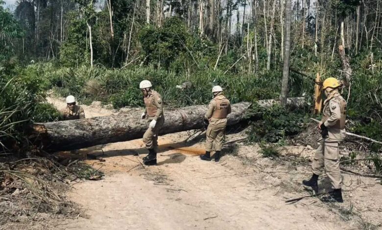 Já em Uruará, as ações se deram em uma área com suposta exploração legal. No acesso, árvores foram derrubadas para dificultar a fiscalização — bloqueios que foram removidos pelo Corpo de Bombeiros. Após sobrevoo com drone, as equipes avançaram cerca de 6 km a pé, chegando a um assentamento do Incra, com pátios de armazenamento de toras basicamente vazios. O órgão será notificado para apurar possível extração ilegal e desmatamento.