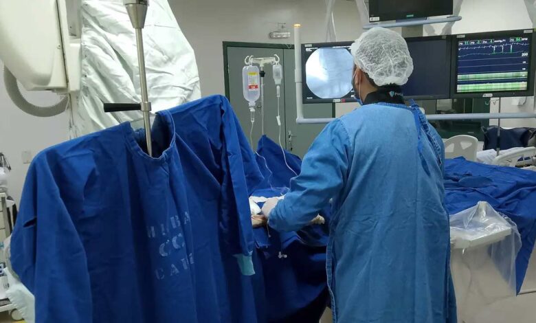 O mutirão envolveu exames de cateterismo — procedimento em que um cateter é introduzido até o coração para diagnóstico e tratamento — e também angioplastias, usadas para desobstruir artérias de forma minimamente invasiva.
