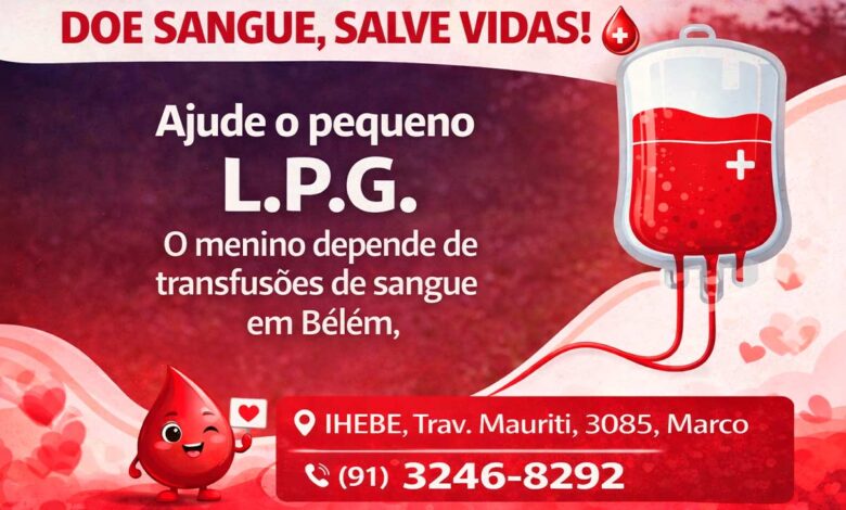 Uma campanha solidária está mobilizando familiares, amigos e voluntários em Belém para incentivar a doação de sangue em apoio a uma criança que necessita de transfusões. O pequeno L.P.G. depende da solidariedade da população para garantir a continuidade de seu tratamento, e cada doação pode representar uma chance real de salvar vidas.